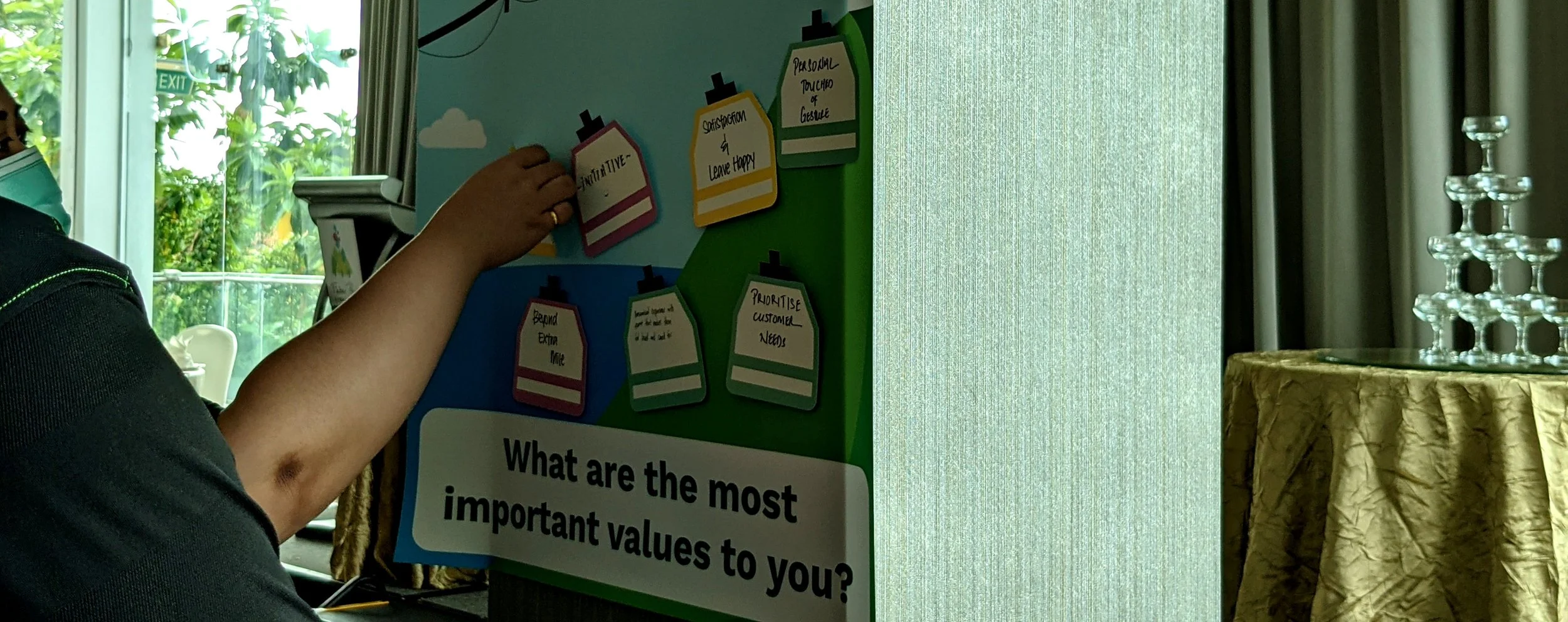 To understand how they can deliver moments of delight, we designed a co-creation workshop with the star service staff to come up with a set of organisational values and driving philosophy from ground up. To arrive at those values, I designed fun activities for the workshop such as: